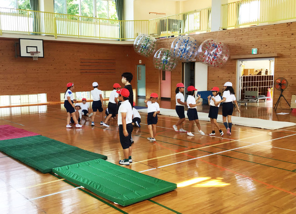 財団が寄贈した体育用品を使っている写真が届きました。今年度、ベルマーク財団が支援したへき地学校、大分県国東市立国見小学校(丹田康彦校長、児童95人)からの感謝メッセージです。