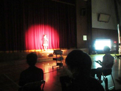 長野県の小谷村立小谷中学校(出口哲朗校長、生徒59人)から、スポットライトとマイクを使っている写真が届きました。二つとも、今年度のへき地学校への支援として財団が贈ったものです。