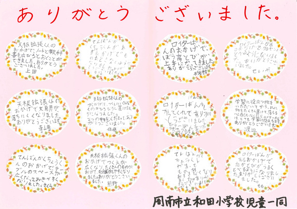 山口・周南市立和田小から感謝メッセージ