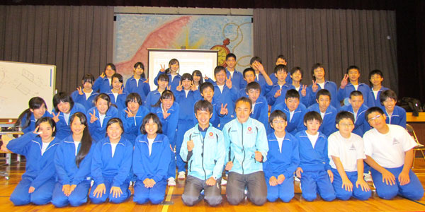 教室の終わりに、「駅伝練習が好きです。手の振り方、姿勢に気をつけて走ります」(1年生の佐藤豪君)、「走る時の正しい姿勢が学べました。駅伝で少しでもタイムが速くなるよう頑張ります(2年生の原田耀大君)、「今日学んだ『こけし』の走り方に注意して持久走を続けます」(3年生の佐藤将臣君)などと感想を述べました。