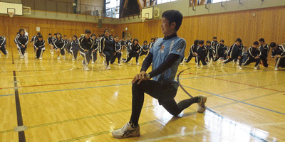 浜松市天竜区の市立春野中学校(山下修平校長)で11月25日、「ベルマーク走り方教室」が開かれました。全校生徒100人が、一流のコーチから正しい走り方を学びました。