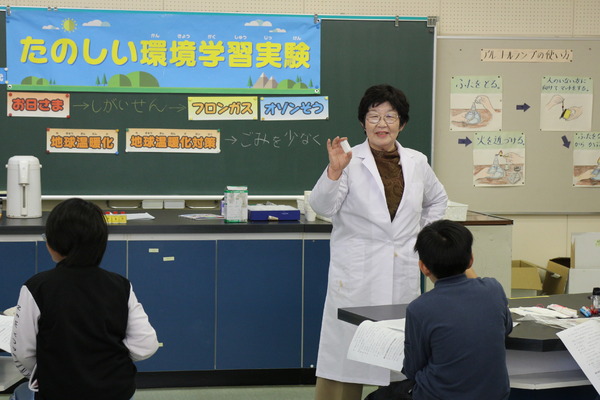 二つの実験を通して「太陽の光の中に紫外線があること」が分かりました。フロンガスがオゾン層を壊すこと、地球温暖化対策にはごみを減らすことが大切という、現在の地球を取り巻く環境についても貴重な話が聞けました。