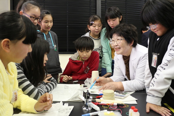 講師の村上規代さんは高校の理科教師を退職後、地元・宮崎県都城市の発明協会の理事を務め、ボランティアで全国各地に出向いて出前授業をし、日常生活に役立つ身近な実験に取り組んでいます。