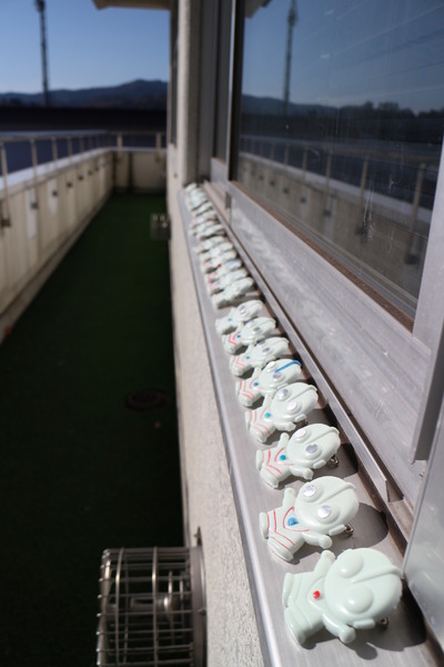 ビニール袋に入れて輪ゴムで密封し、ヨーヨーのようにしたスライムと、ウルトラマンバッジは、みんなのお土産になりました。