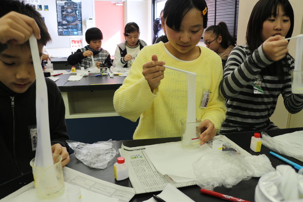 「実験は後片付けが大切です。身の回りを整理すると、頭の中も整理されますよ」という村上先生のアドバイスで協力し合って後片付けし、気持ちよく授業を終えました。