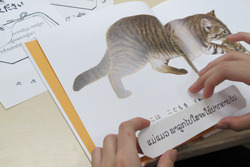 1校あたり25セットの絵本と翻訳シールなどがSVAから届きます。説明書に従って絵本をつくり、作業は1時間ほどです。シールを貼り終えた絵本を宅配便などでSVAに送ります(送料のみ学校負担)。10月末までの返送が条件です。