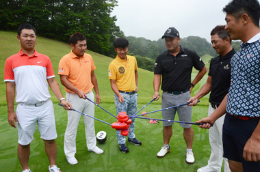 2014年の賞金王、小田孔明プロら6人のプロによる「ドリームチーム」も「やるからには勝つ!」と、気合十分で臨みました。小田プロたちはプレーの合間には「あの子なんか、とてもうまい。マナーもいい。小学生(のレベル)じゃない」としきりに感心していました。