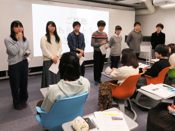 この発表グループ11人のうち、7人が宮城県や岩手県で震災時に避難経験を持っていました。最後に述べた感想では「自分の体験を学びに生かすことができると分かった」「この経験を次世代に伝えていくことが大事」などとともに、「当時、沿岸にいなかった人も一緒になって、それぞれの立場から考えることが学びになった」という意見も出ていました。