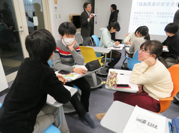 会の最後には、ゲストの東北大学基礎ゼミ生が高校生向け模擬授業を披露。さらに自主ゼミのメンバーらと、原発事故の風評被害について意見交換しました。