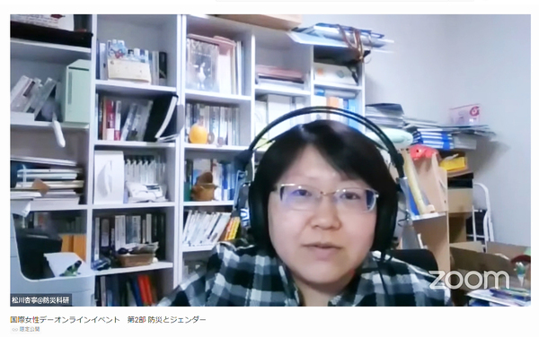「防災とジェンダー」というタイトルのオンラインによる講演が3月5日にありました。講師は、ベルマーク財団と「防災科学教室」を共催している国立研究開発法人防災科学技術研究所(防災科研)の特別研究員、松川杏寧さん。災害や犯罪などの危機に際し、より安全・安心でいられる社会をめざす研究をしています。