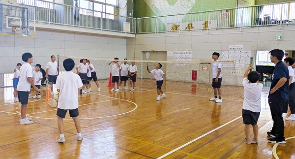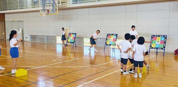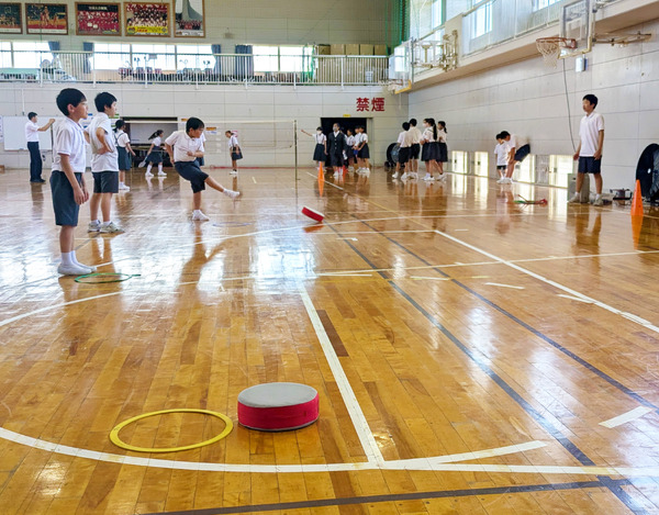 財団からは、ソフトスライドサッカー、バドミントンラケットとシャトル、ターゲットゲームを贈りました。河井小と大屋小の冨水聡校長によると、児童会が中心になって希望を調査し、多かったものを選んだそうです。訪れた日の昼休み、体育館で遊具を使った「イベント」が開かれ、児童の代表が「ありがとうございました」と感謝のあいさつをしてくれました。