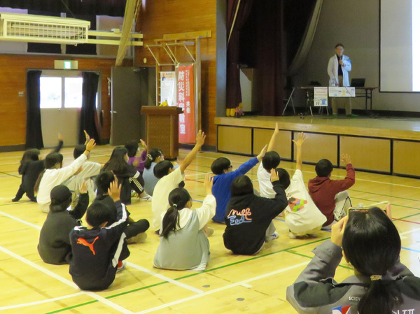 財団のソフト事業「教育応援隊」のプログラムのひとつ、「防災科学教室」が11月8日、東京都渋谷区の区立笹塚小学校(西田香校長、児童550人)で開かれました。この教室は国立研究開発法人防災科学技術研究所(防災科研)と財団が、ベルマーク運動の参加団体向けに共催しているものです。防災科研の研究者が講師を務めます。