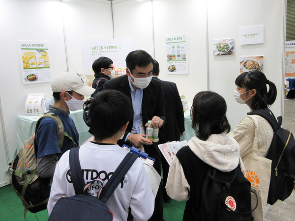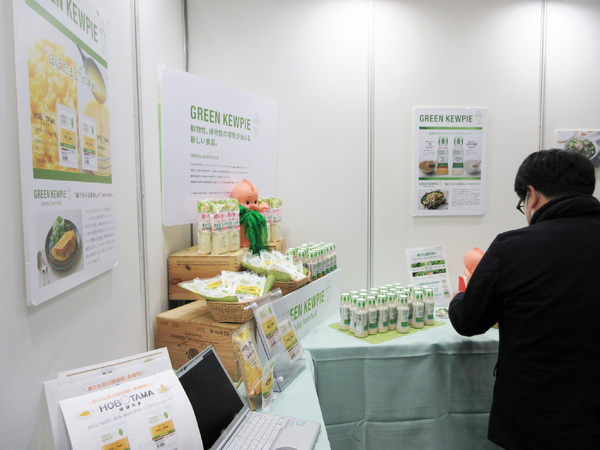 キユーピーのブースに並んでいたのは、プラントベースフード(植物由来の原材料を使用し、畜産物や水産物に似せて作られている食品)など〝サステナブルな食〟を展開する新ブランド「GREEN KEWPIE」の商品です。