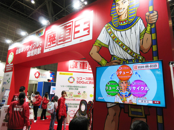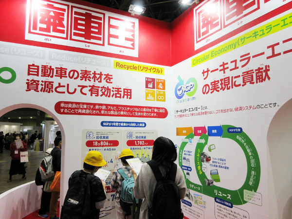 NGPのブースでは、大きなパネルを使って、廃車になった車の「その後」を展示。リユース部品として生まれ変わることで、2023年はブナの木約217万本分の吸収量に相当するCO₂を削減できたことなどを伝えていました。NGPのリユース部品には、品質を保証する「NGPギャランティシール」にベルマークが付いています。
