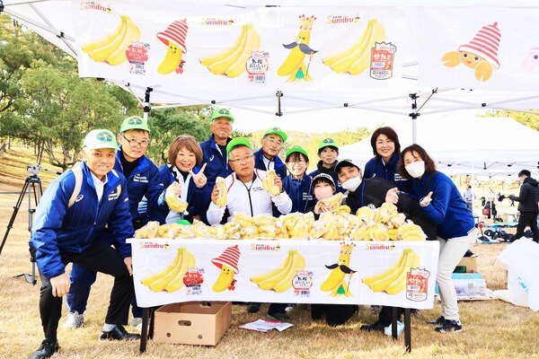 会場にはベルマーク回収ブースが設けられ、参加者が持参したベルマークが寄せられました。ベルマーク運動の協賛会社のスミフル(ベルマーク番号70)は、選手らにバナナやパインを提供して大会に協力しています。スミフルのバナナにはベルマークが付いています。
