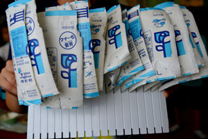 取り組みは12年度から始まりました。以前から同じメーカーの牛乳でしたが、テトラマークを見落としていたのです。