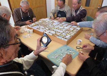 最近、目が遠くなったため、虫メガネや拡大鏡を使うようになりましたが、仕分け作業の手は休みません。