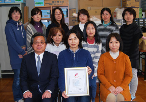 川越市の小中学校PTA54校は、東日本大震災の寄贈マークの仕分けボランテイアに組織をあげて協力するという全国的に例の少ない活動を行っていますが、これとは別に高階小の近隣5校でも独自に年1回持ち回りで寄贈マークの処理作業をしています。昨年11月に高階小に20人ほどが集まり、事前に各校で仕分けしたベルマーク約3万点分を集計して財団に送りました。神林(かんばやし)邦子PTA会長は「今後も続けていきたい」と話しています。