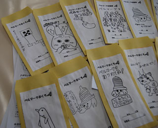 今年度は新しい試みがありました。昨年9月、福祉委員の児童が仕分けに挑戦したのです。「共にはぐくむ教育」を目標に掲げたPTAが、回収のその後、を知ってもらおうと企画し「委員会の時間」を使って行われました。コーチ役のお母さんたちが児童の間に座り、協賛会社別や点数別に仕分けました。特に10枚ずつテープに貼る作業が興味を引いたようで、楽しそうだったという事です。